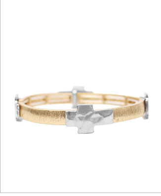 HAMMERED CROSS AND HEART TOGGLE BRACELET