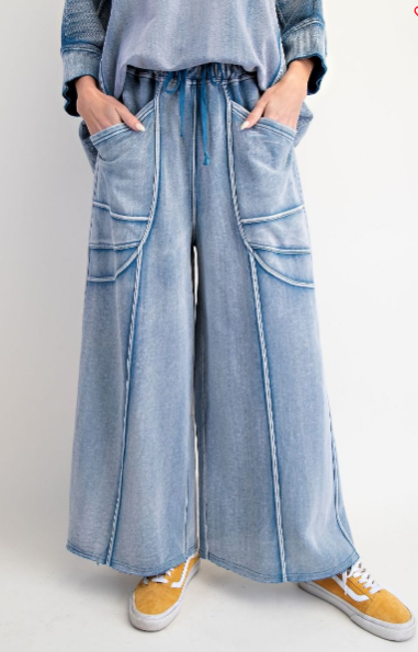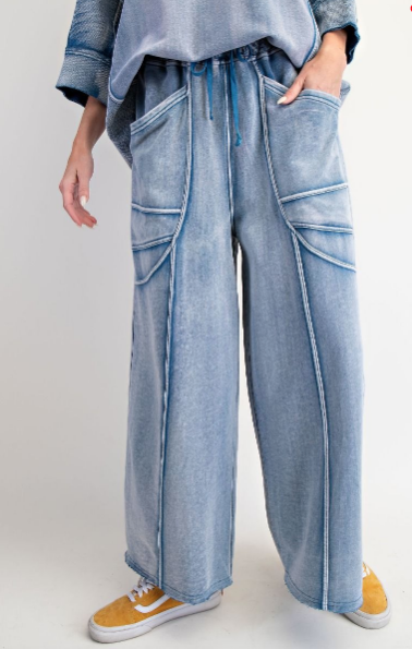 WASHED DENIM FRENCH TERRY PANT