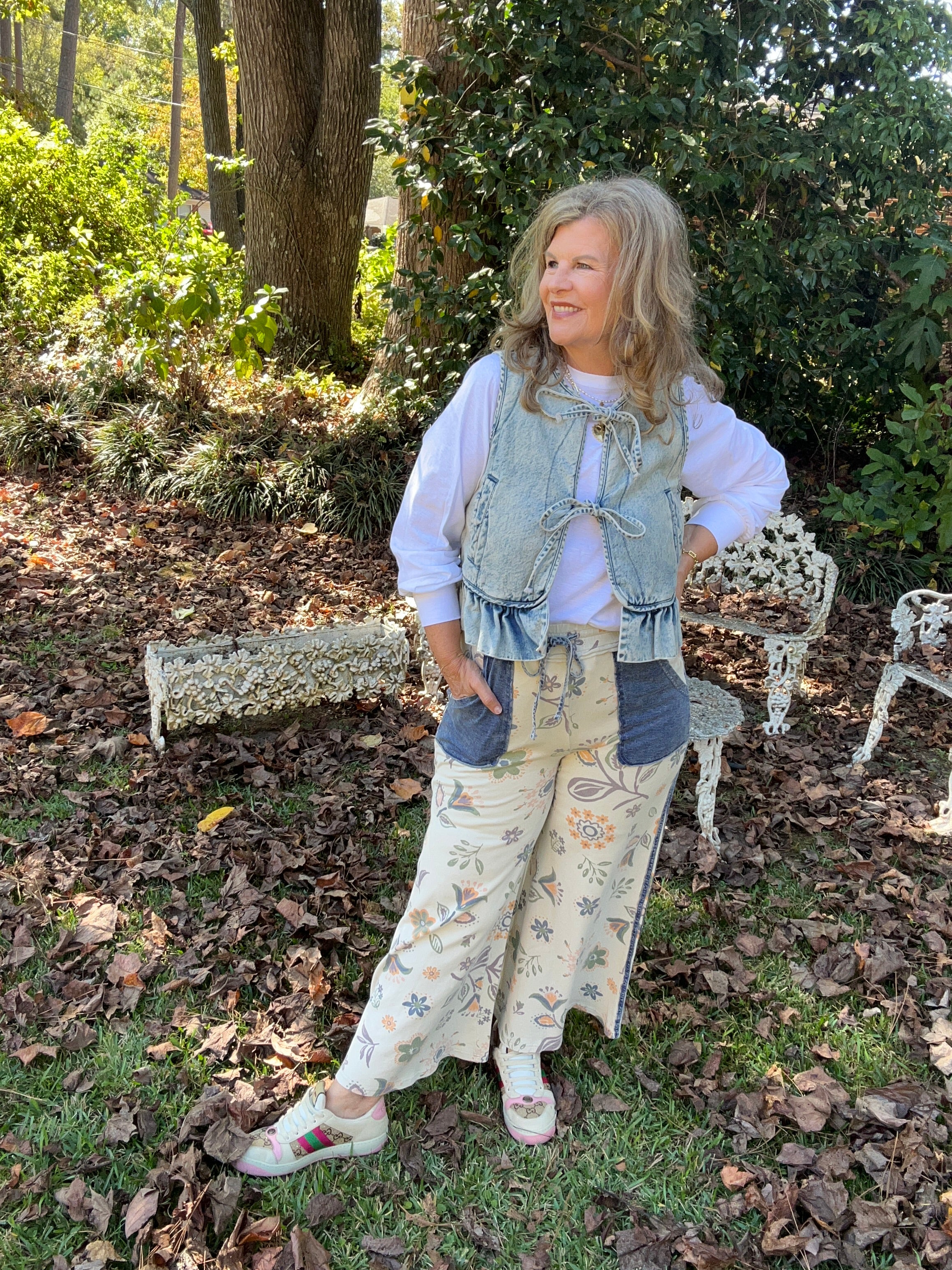 QUILTED BLUE AND WHITE FLORAL JACKET