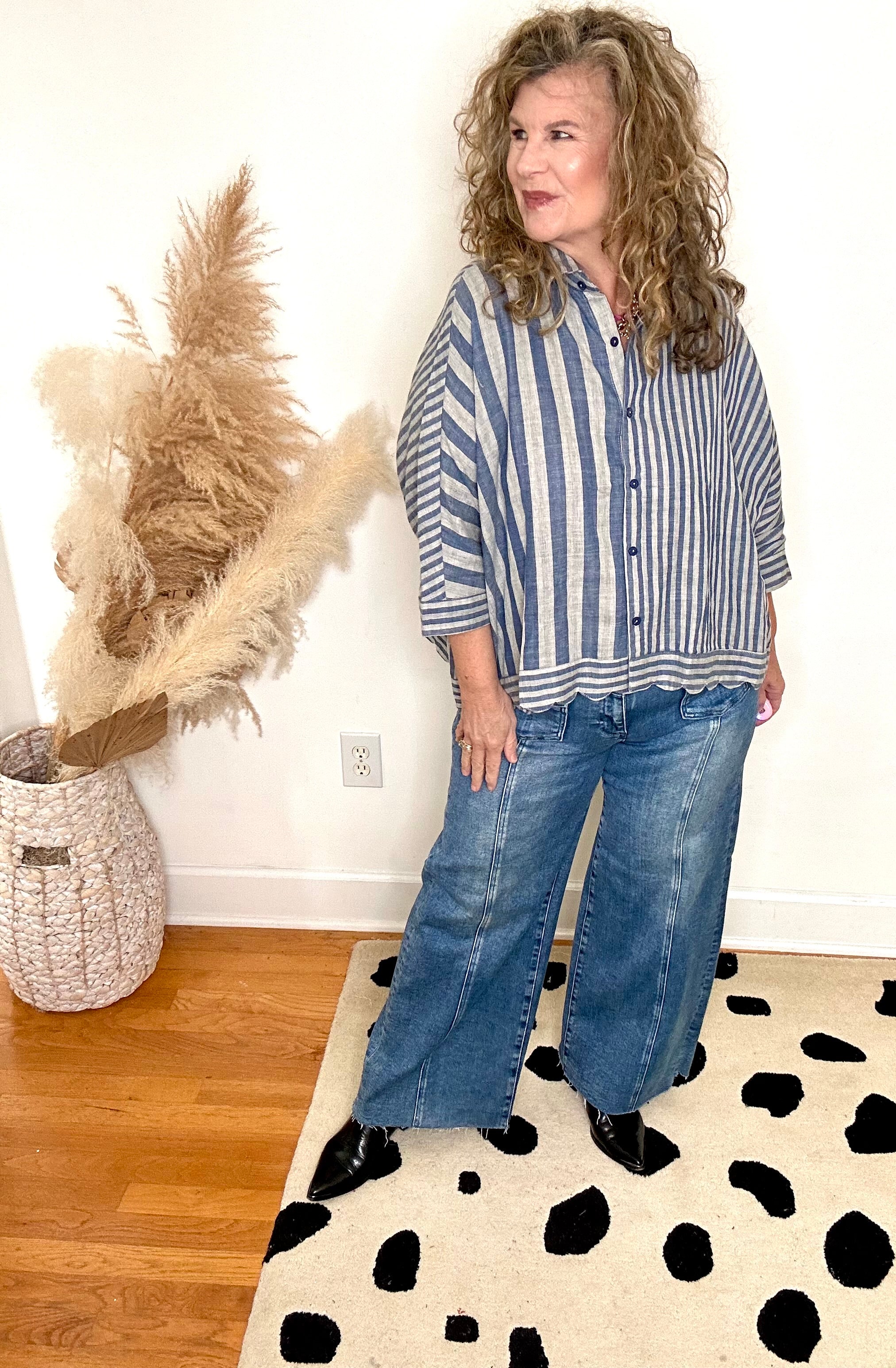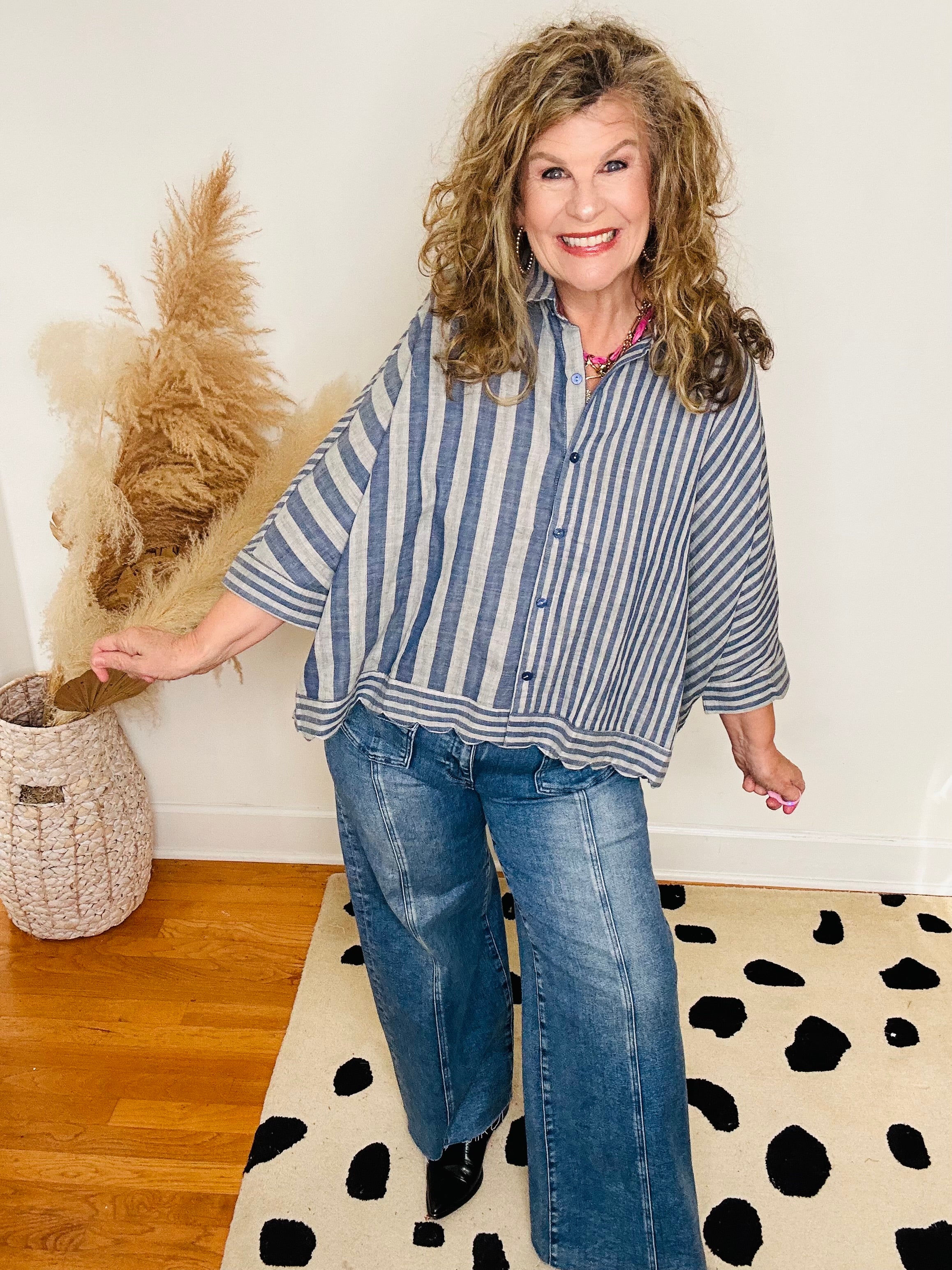 FLORAL EMBROIDERED STRIPE BLOUSE