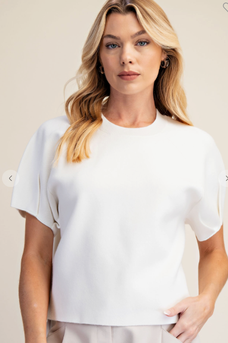 ROUND NECK SHORT PUFF SLLEVE SWEATER TOP