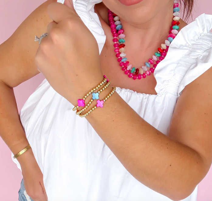Get ready to POP off with the Color Pop Bracelet set. Featuring playful bursts of bold color and shiny beads, these stretchy cuties are pure happiness for your wrist. Wear them solo or stack them high- either way they're serving major fun and major style all day long!