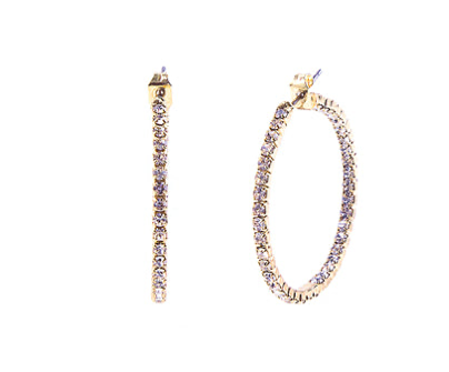 Add a touch of sparkle with these Gold/Silver Rhinestone Hoop earrings. At 1.5 inches, they’re the perfect size to dress up your look or keep it casual with a classy shimmer. Whether you're heading out or staying in, these hoops make every moment shine.