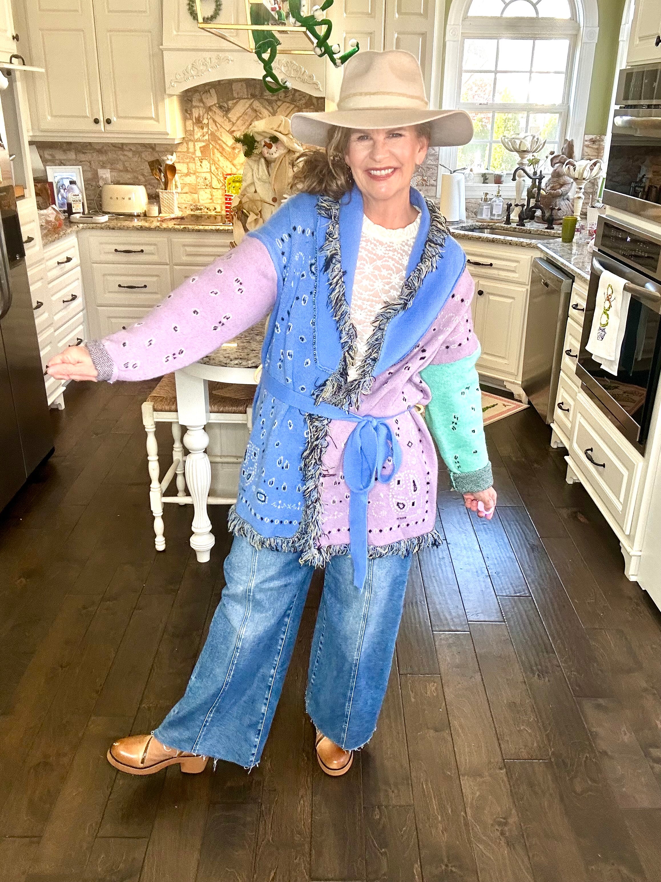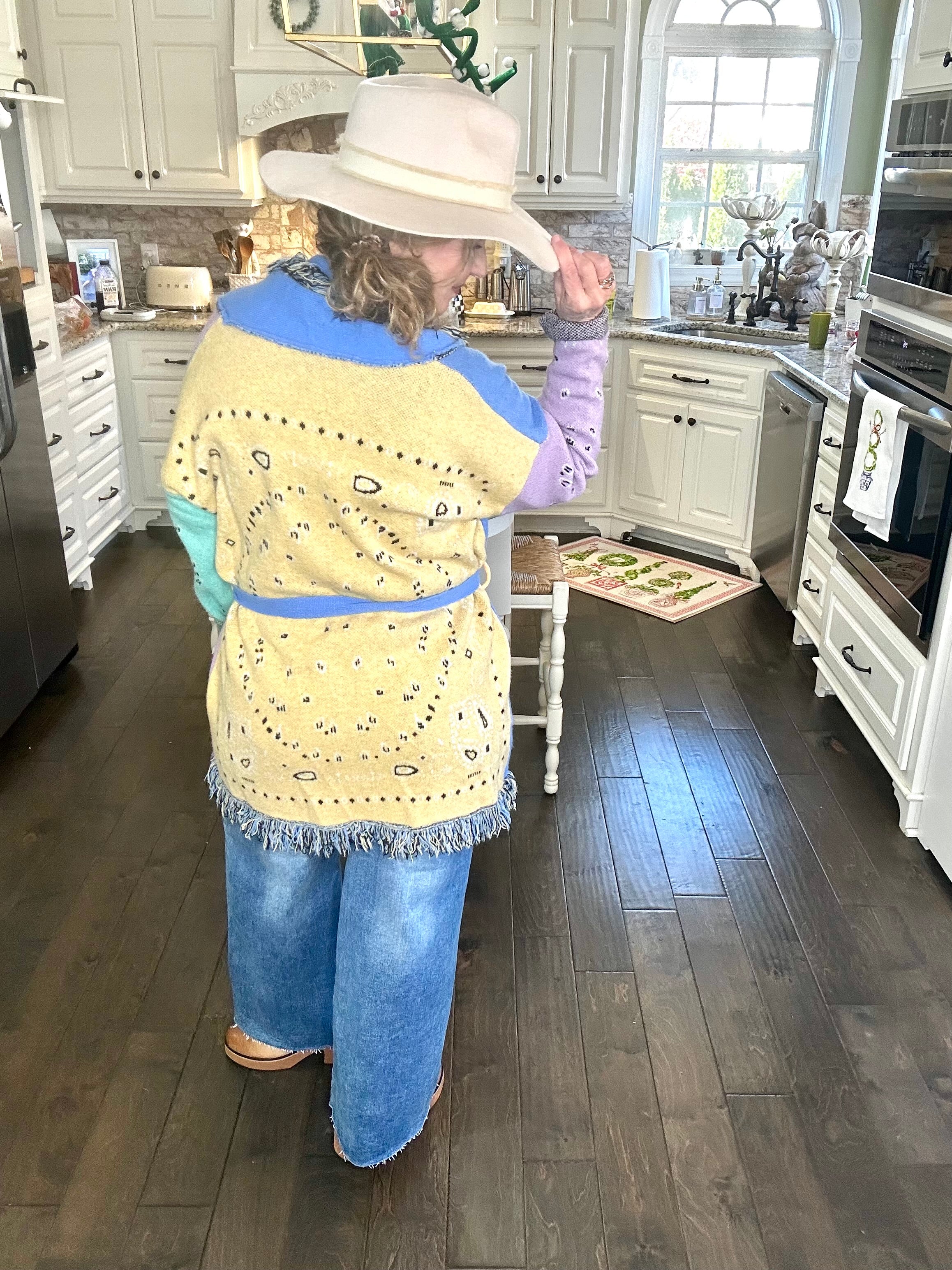 PAISLEY PRINT CONTRAST KNIT CARDIGAN