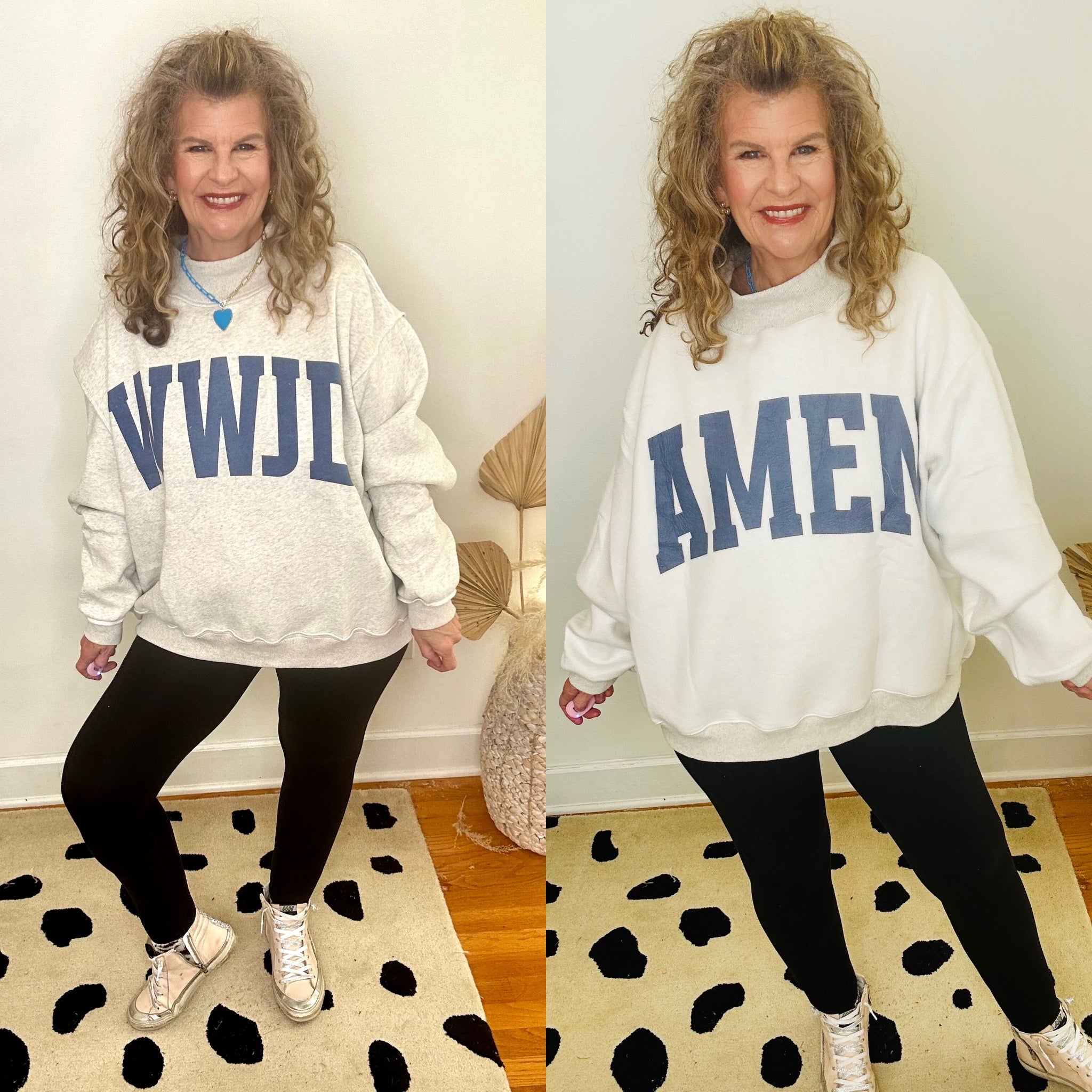 WWJD AND AMEN REVERSIBLE MOCK NECK SWEATSHIRT