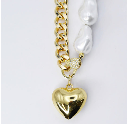 Get ready to turn heads with the MAJESTIC HEART PEARL NECKLACE. This stunning gold necklace, Grae's personal favorite. Whether layered or worn alone, it's a showstopper that will add a touch of elegance to any outfit.