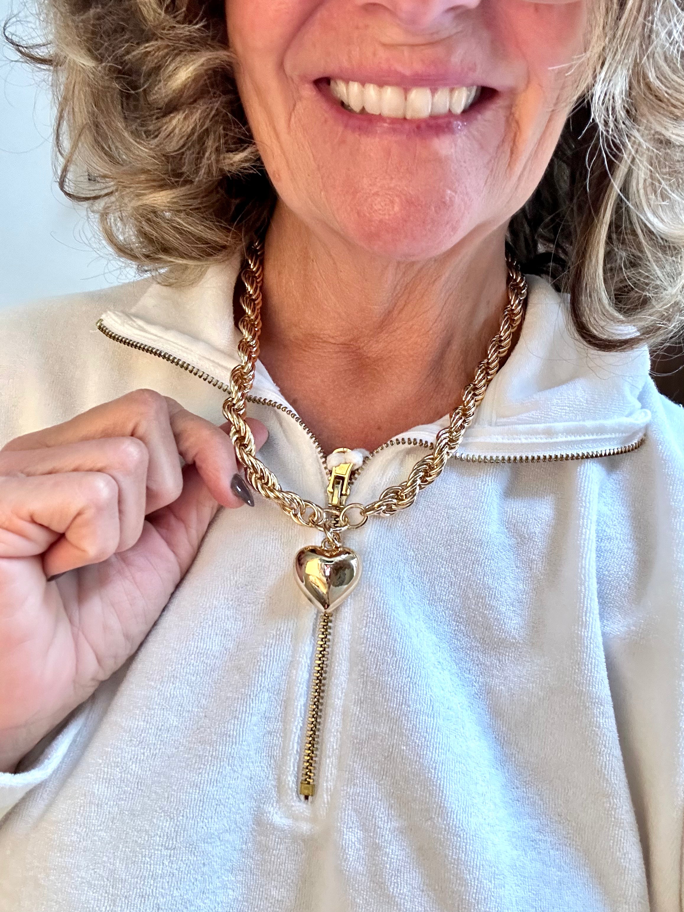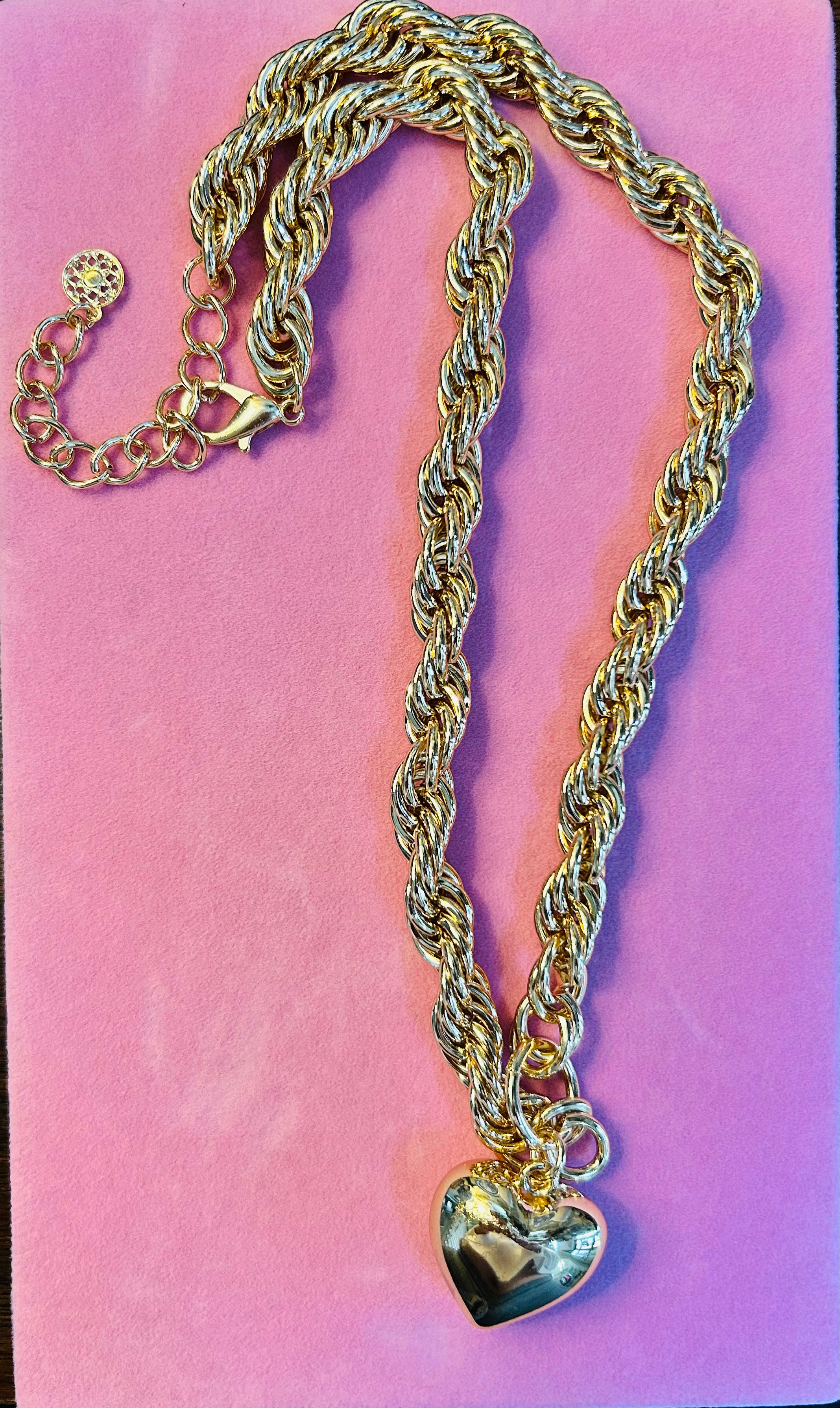 PUFFY HEART AND GOLD CHAIN NECKLACE