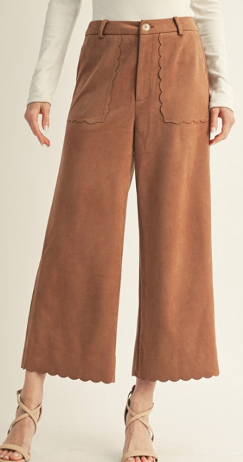WASHED FAUX LEATHER ELASTIC WAIST PANTS