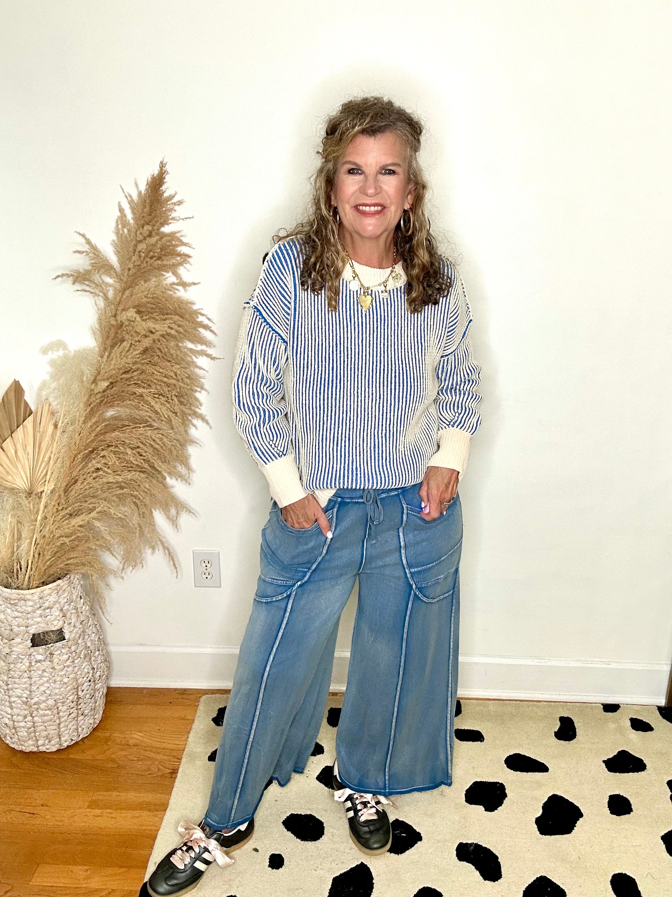 FLOWER POWER SWEATER TOP IN LIGHT OLIVE