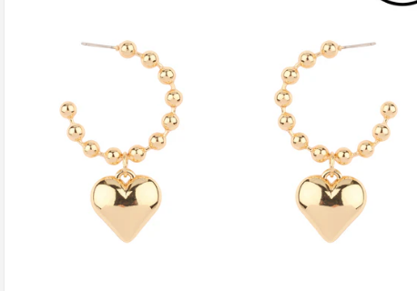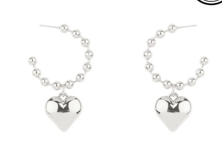 PUFFY HEART BEADED HOOPS- SILVER/GOLD